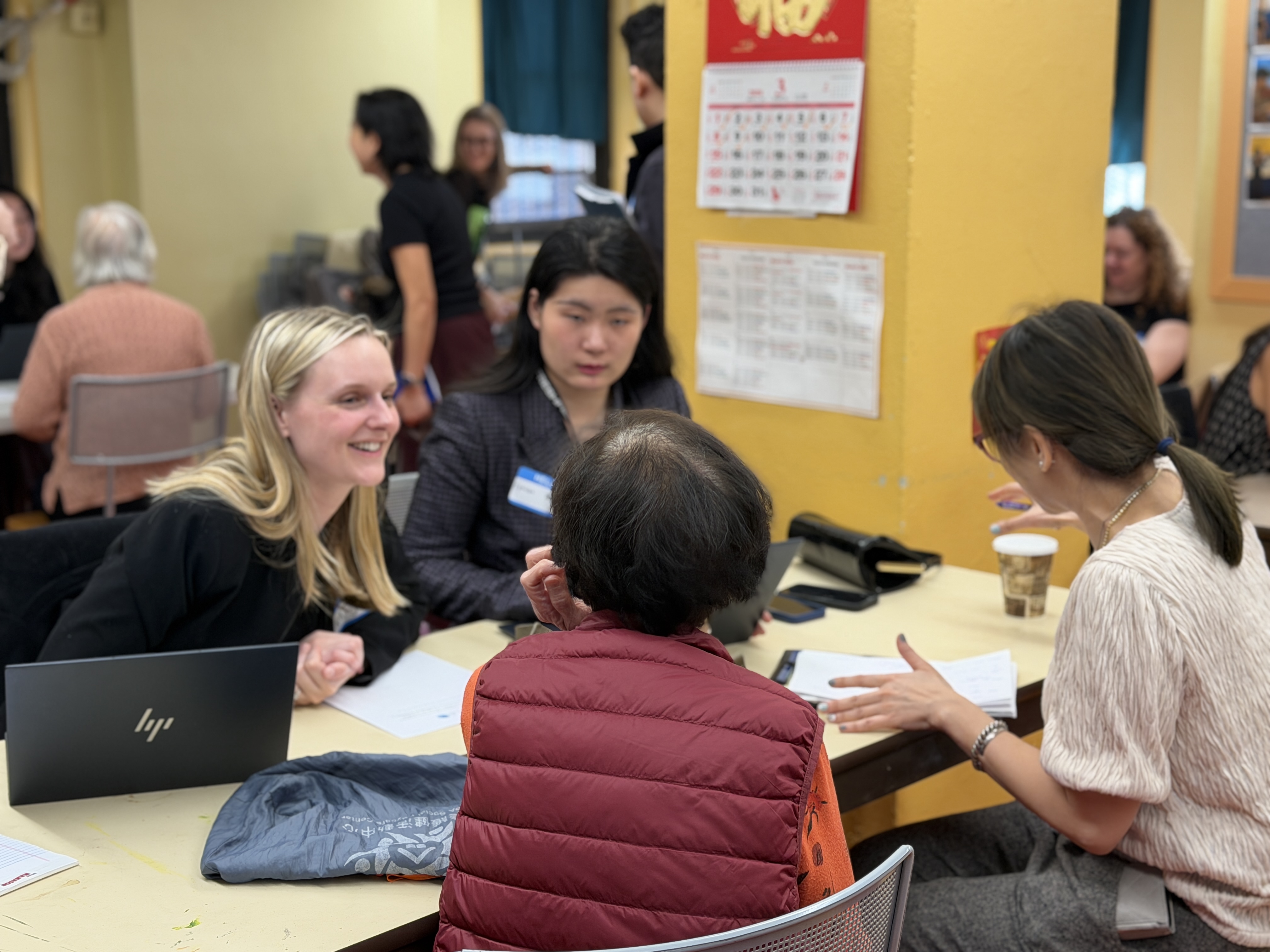 Pro bono volunteers assist clients during a Rent Freeze legal clinic at Hamilton-Madison House Confucius Square.